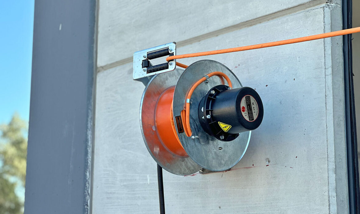 na sprężynie (długość kabla 10–40 m), który zapewnia bezpieczne i efektywne zasilanie